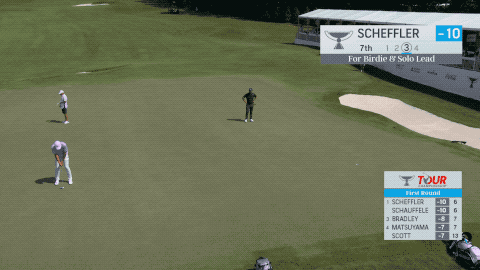 在今天的比赛中,舍弗勒再次以熟悉的-10杆开打。赞德·谢奥菲勒开场抓到小鸟,舍弗勒吞下柏忌,两人并列,成绩皆为-9杆。